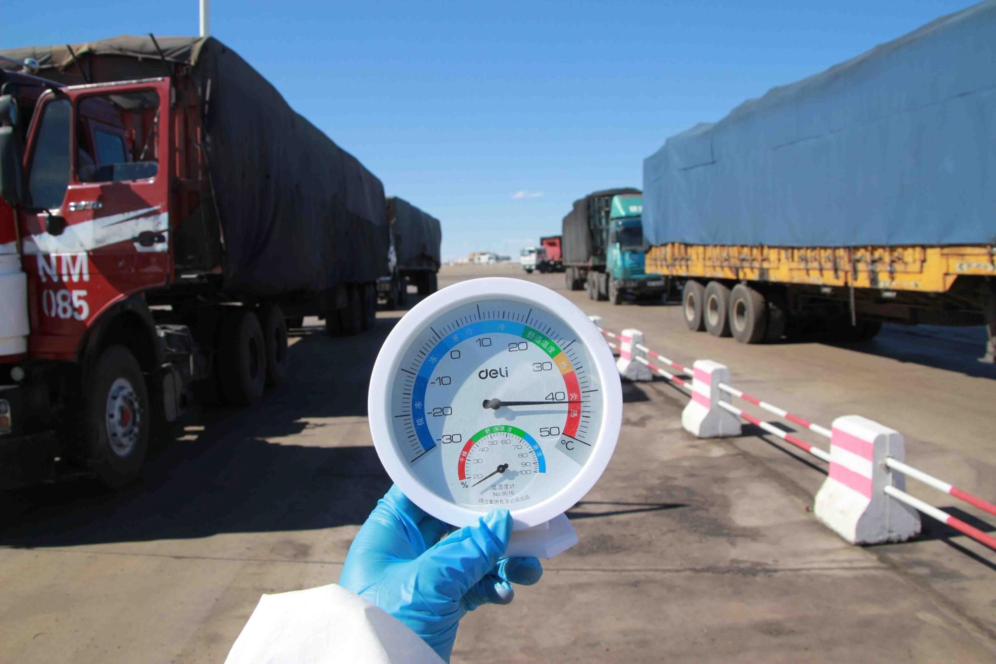6月11日,內(nèi)蒙古自治區(qū)阿拉善盟額濟(jì)納旗策口岸地氣溫持續(xù)升高,策克口岸距離額濟(jì)納旗近70余公里,地處戈壁深處,全年干旱少雨干燥的氣候、持續(xù)增長(zhǎng)的氣溫,為抗擊疫情、出入境查驗(yàn)等工作都帶來了不小的影響。