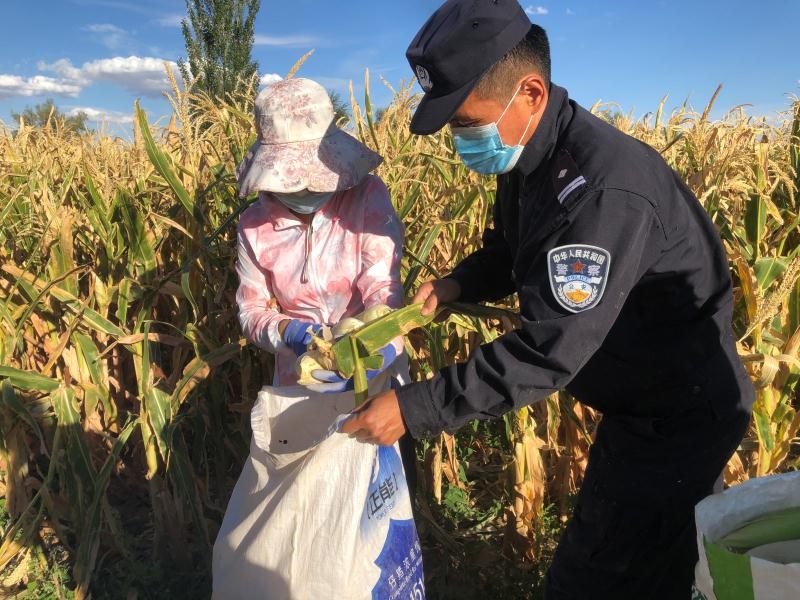 金秋時節(jié),大地金黃,碩果飄香,民警們頭頂烈日,揮舞鐮刀,有條不紊地收割著玉米,田間地頭中到處洋溢著爽朗的笑聲、彌漫著豐收的喜悅。這是在內(nèi)蒙古阿拉善右旗巴丹吉林鎮(zhèn)阿日毛道嘎查的莊稼地里,阿拉善邊境管理支隊(duì)的民警幫助群眾秋收的景象。