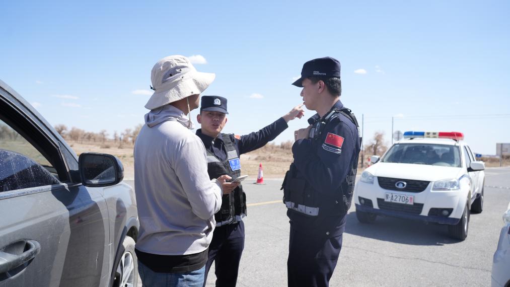 阿拉善邊境管理支隊(duì)民警進(jìn)行道路封控。