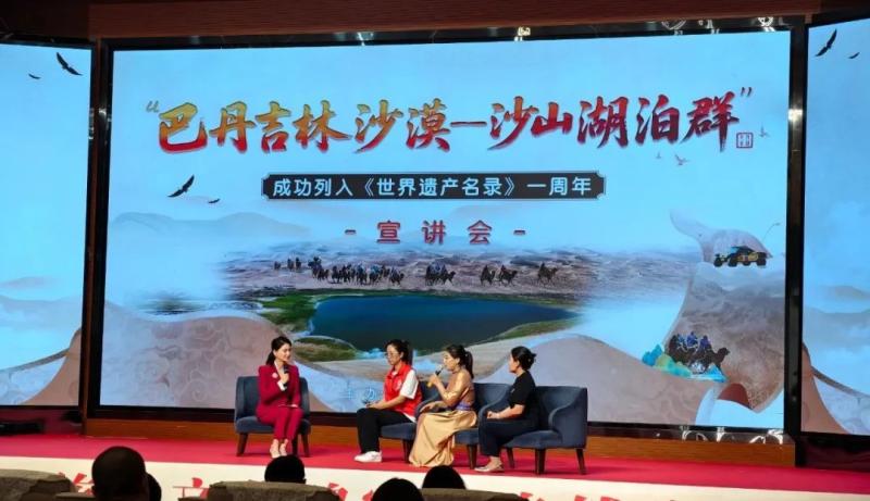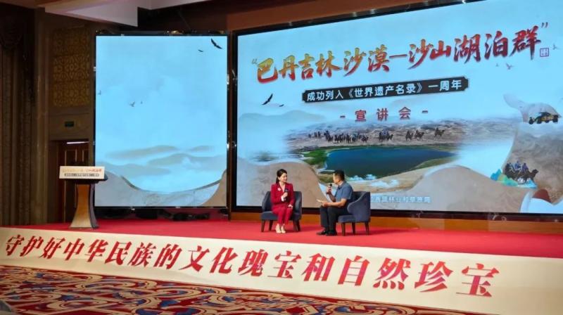 8月12日,慶祝“巴丹吉林沙漠—沙山湖泊群”成功列入《世界遺產(chǎn)名錄》一周年宣講會在阿拉善盟賓館火熱開講。