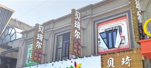 當日,記者來到貝琦爾兒童攝影會館,該店招牌還未摘掉,但店門已經上鎖。從外向里看去,屋內擺滿了零亂的雜物,店門前則貼著一張出租告示。