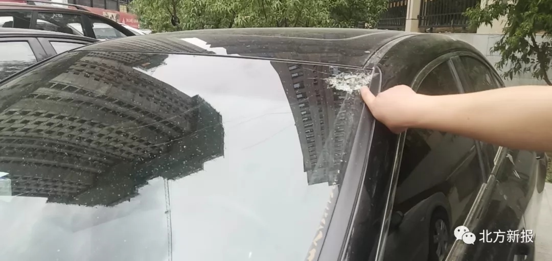 當(dāng)日15時(shí)30分,記者在正祥國際小區(qū)三期工地西側(cè)見到了在附近開茶樓的賀先生。他說,他的雷克薩斯汽車是5月份才買的。記者看到,這輛車的前風(fēng)擋玻璃上有一處直徑10厘米左右的放射性裂痕,車頂上有一處明顯被砸的凹陷,車身上落滿了細(xì)碎的水泥點(diǎn)。賀先生說,正祥國際小區(qū)三期工地高空墜物,停在路邊的十幾輛車不同程度受損,他的車最嚴(yán)重。