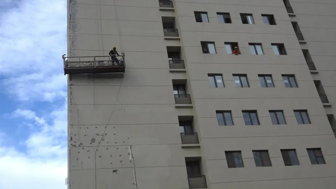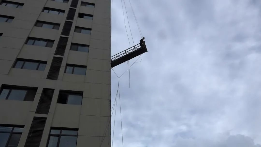9月1日17時許,包頭市各地出現(xiàn)冰雹、雷雨大風(fēng)等強對流天氣,冰雹平均直徑5毫米,最大直徑10毫米。在這樣惡劣的天氣條件下,一名粉刷工人被困在包頭市富力城公寓8樓外的吊籃中,情況危急。