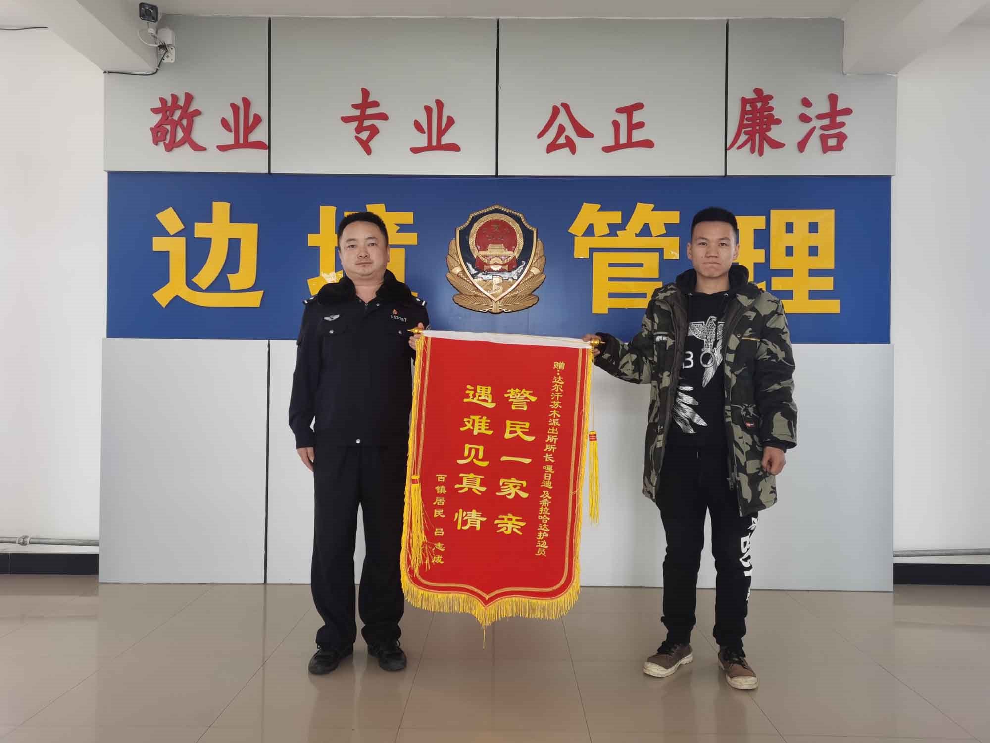 “民警同志太感謝你們了,有你們在我們就感覺安心多了。”1月19日早晨,內(nèi)蒙古包頭市達茂旗達爾罕蘇木牧民那木吉拉“嘎吱嘎吱”的踩著潔白的積雪走進包頭邊境管理支隊達爾罕邊境派出所,一邊說著一邊拿出印有“警民一家親,遇難見真情”的錦旗遞給民警。