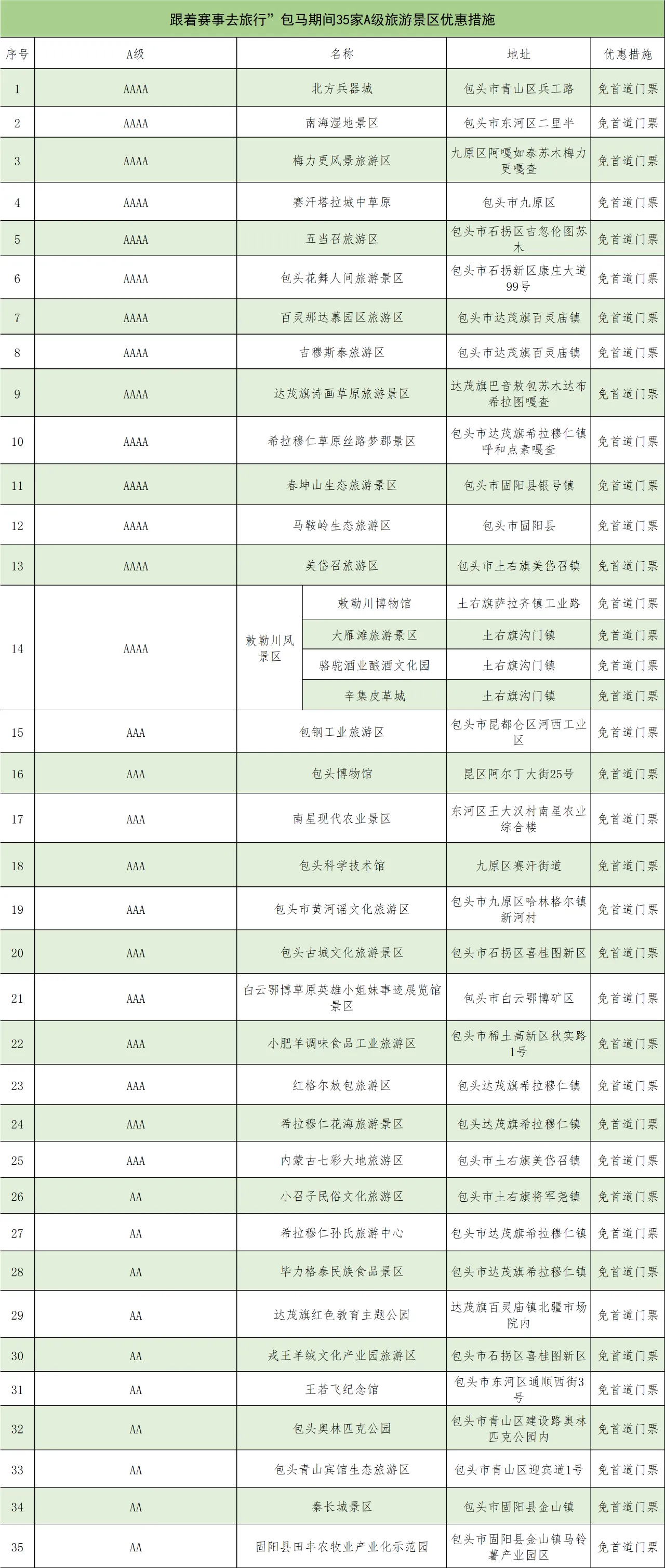 2025包頭馬拉松即將開跑,這場(chǎng)備受矚目的賽事吸引眾多跑友齊聚包頭,用腳步丈量這座美麗的城市。馬拉松期間(5月18~19日),包頭文旅為參賽人員(憑號(hào)碼簿、中簽短信、手環(huán))推出全市35家A級(jí)旅游景區(qū)免收首道門票的優(yōu)惠政策,還將“上線”多項(xiàng)特色活動(dòng)。