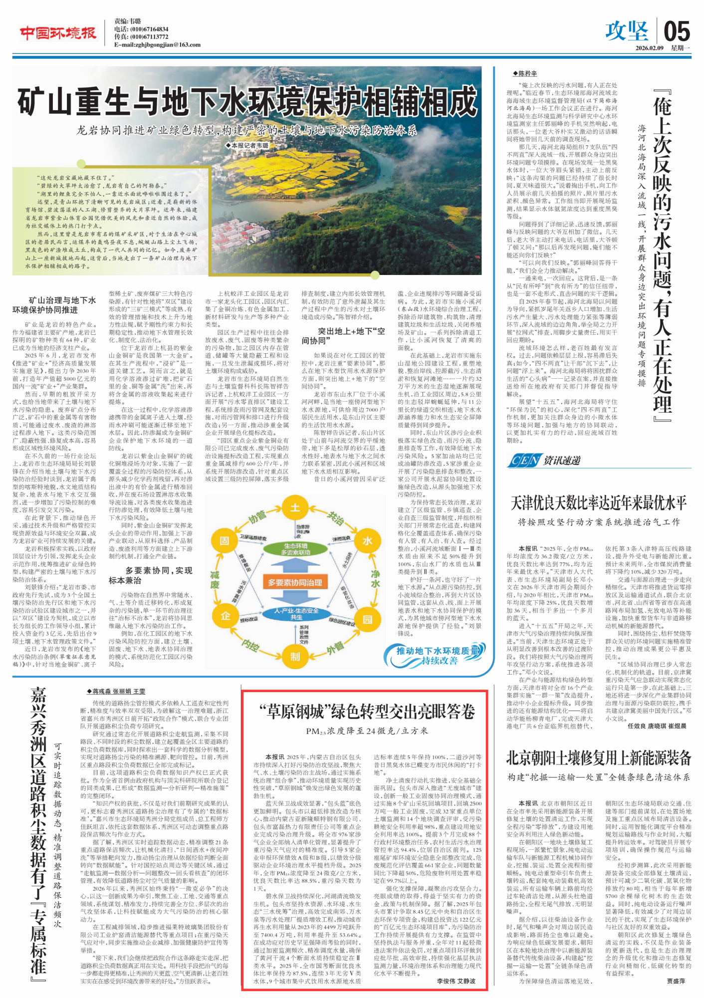 2026年2月9日,《中國環(huán)境報(bào)》第5版刊發(fā)題為《“草原鋼城”綠色轉(zhuǎn)型交出亮眼答卷 PM2.5濃度降至24微克/立方米》的文章,報(bào)道了2025年,內(nèi)蒙古自治區(qū)包頭市持續(xù)深入打好污染防治攻堅(jiān)戰(zhàn),聚焦大氣、水、土壤污染防治主戰(zhàn)場(chǎng),通過實(shí)施系統(tǒng)治理“組合拳”,推動(dòng)環(huán)境質(zhì)量實(shí)現(xiàn)歷史性突破,“草原鋼城”煥發(fā)出綠色發(fā)展的蓬勃生機(jī)。