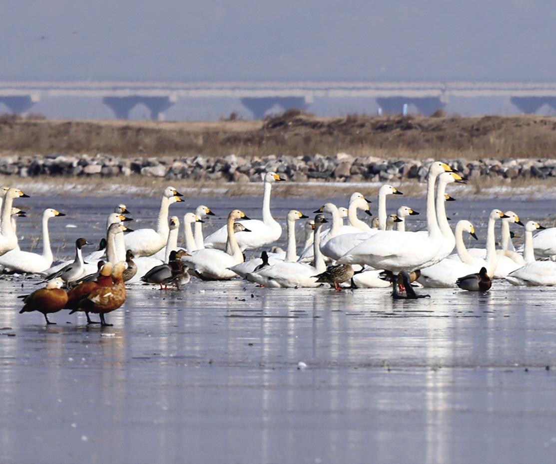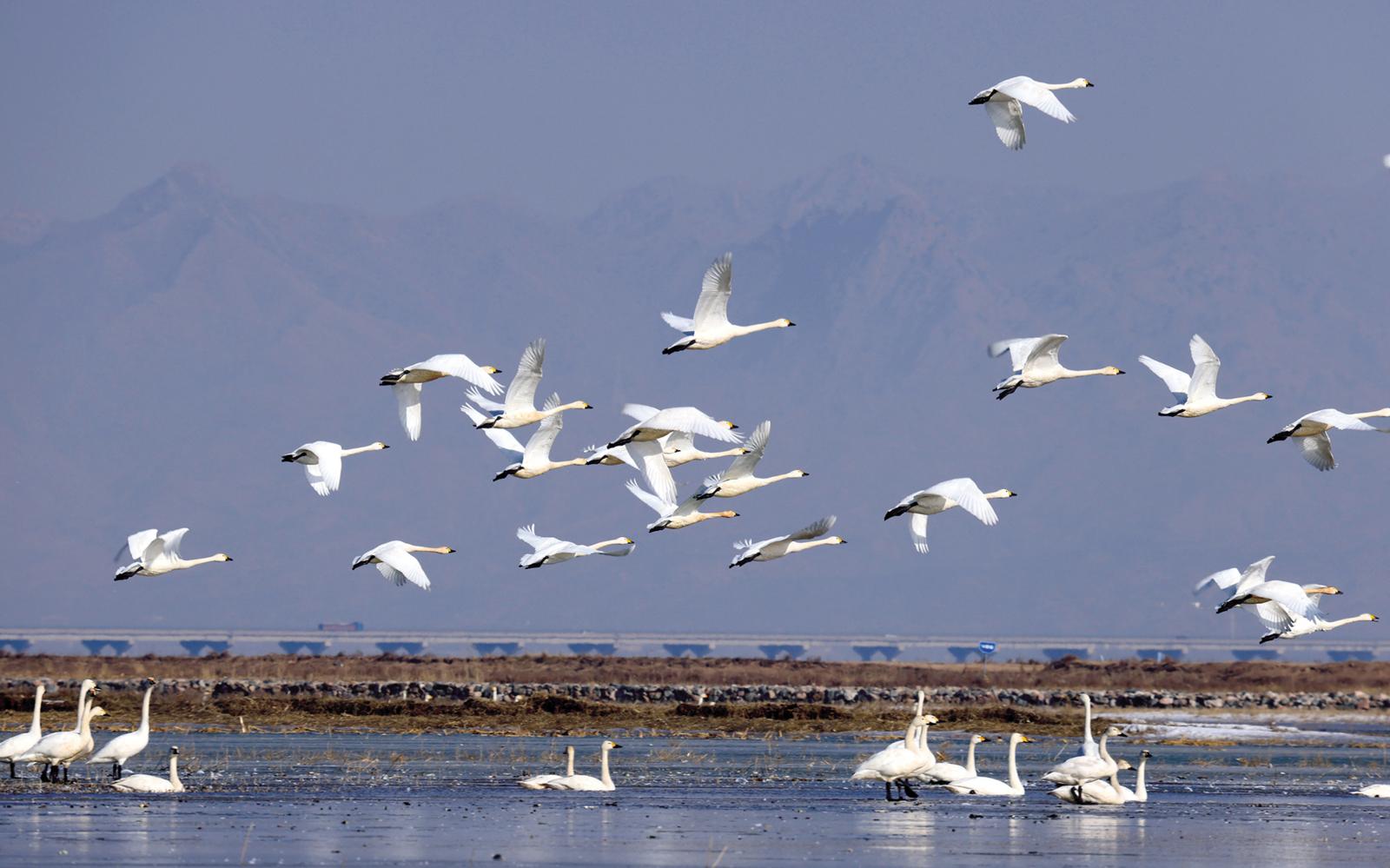 天氣日漸回暖,大批北歸候鳥(niǎo)飛臨黃河“幾字彎”逗留棲息。新華社記者 賈立君 攝