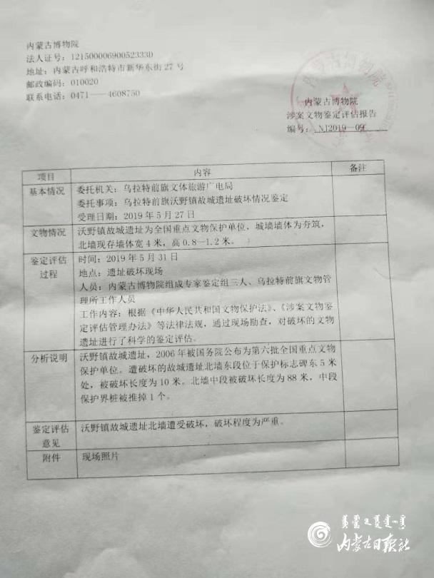 內(nèi)蒙古博物院出具的《涉案文物鑒定評估報(bào)告》