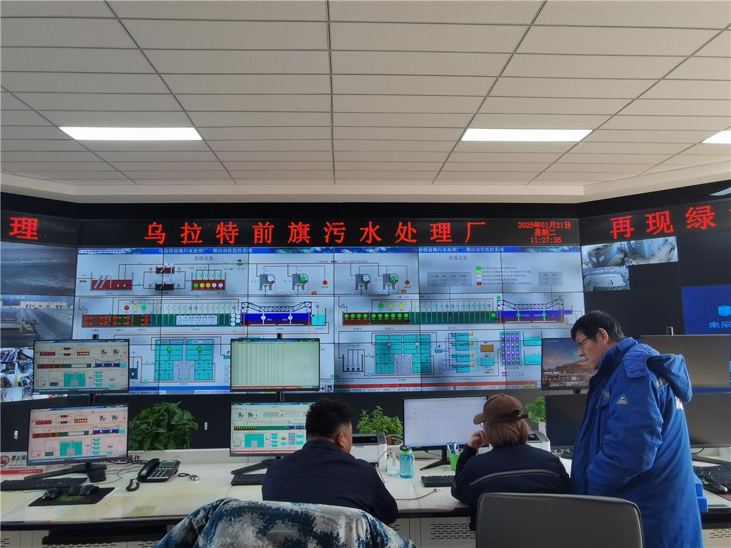 烏拉特前旗污水處理廠總控室。該廠通過智能化在線監(jiān)測,確保污水處理全過程嚴(yán)格達(dá)標(biāo)。2024年,共處理污水558萬噸,日均處理量達(dá)到1.53萬噸,達(dá)標(biāo)率為98.9%。處理后的中水達(dá)到國家一級A標(biāo)準(zhǔn),主要用于電廠、水務(wù)企業(yè)、道路灑掃和濕地生態(tài)補(bǔ)水等,實(shí)現(xiàn)了水資源的再利用。在水資源循環(huán)利用方面作出了積極貢獻(xiàn)。