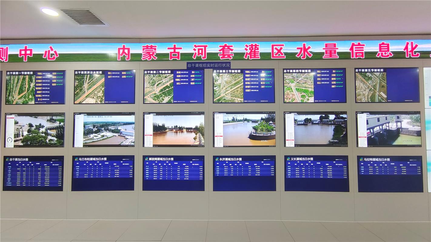 河套灌區(qū)水量信息化監(jiān)測中心數(shù)字墻。