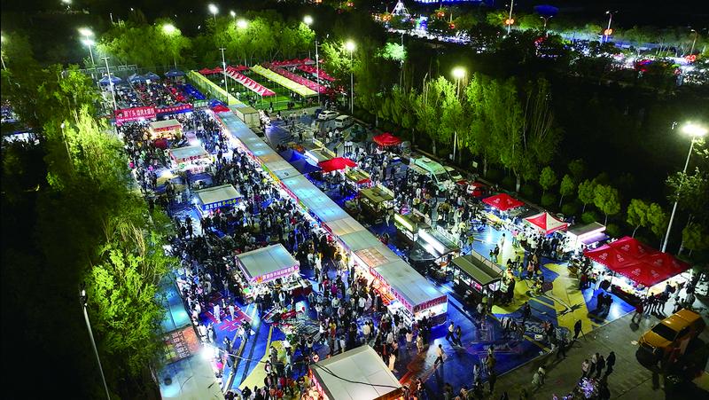 5月17日晚,杭錦后旗體育公園內(nèi)人潮涌動(dòng),杭錦后旗“5·19中國(guó)旅游日”嗨音尋味暨“陜壩味道”大型美食活動(dòng)在這里開幕。