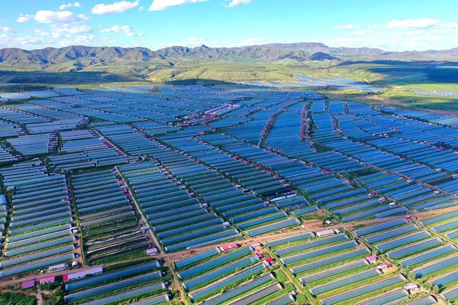 內(nèi)蒙古赤峰市松山區(qū)大廟鎮(zhèn)公主嶺現(xiàn)代農(nóng)業(yè)產(chǎn)業(yè)園,這座內(nèi)蒙古自治區(qū)單片規(guī)模最大、效益最好的設(shè)施農(nóng)業(yè)園區(qū),4822棟日光溫室生機(jī)盎然。據(jù)介紹,園區(qū)年產(chǎn)蔬菜7萬噸以上,年產(chǎn)值4億元,年純收益3億元左右。借助國家生態(tài)脆弱地區(qū)移民扶貧搬遷政策,園區(qū)累計遷入貧困戶669戶1416人實現(xiàn)脫貧。