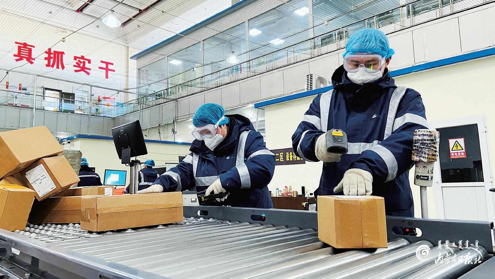 2月3日,機(jī)場(chǎng)工作人員正掃碼運(yùn)送跨境電商進(jìn)出口首單貨物。當(dāng)日,中國(guó)(呼和浩特)跨境電商綜合試驗(yàn)區(qū)機(jī)場(chǎng)監(jiān)管場(chǎng)所9610出口業(yè)務(wù)開通儀式在呼和浩特白塔國(guó)際機(jī)場(chǎng)舉行。標(biāo)志著白塔國(guó)際機(jī)場(chǎng)已經(jīng)具備運(yùn)營(yíng)跨境電商進(jìn)出口業(yè)務(wù)的能力,實(shí)現(xiàn)了跨境電商進(jìn)出口業(yè)務(wù)的首次“試航”。(內(nèi)蒙古日?qǐng)?bào)社融媒體記者 金泉 攝)