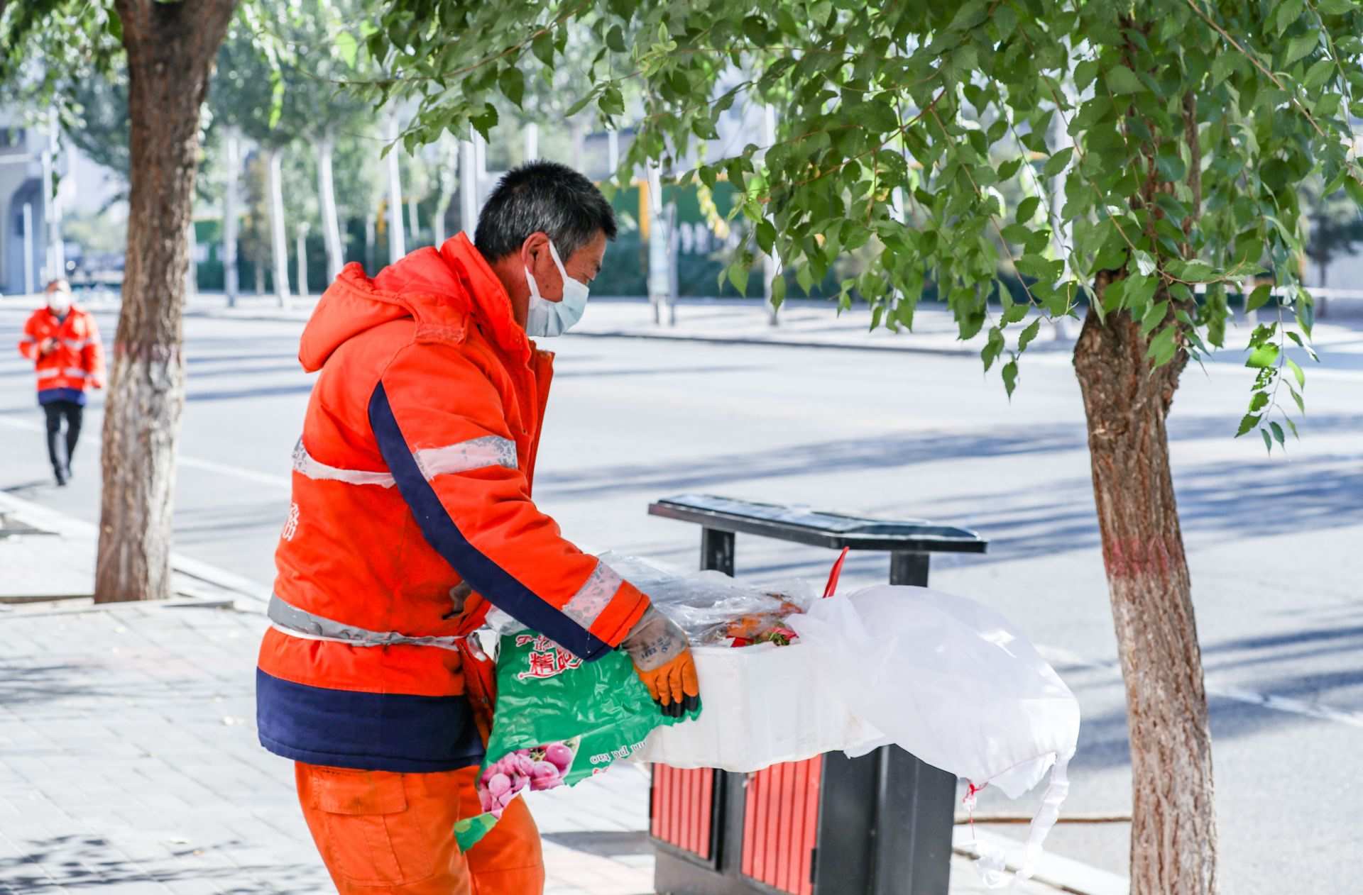 10月18日,呼和浩特市賽罕區(qū)環(huán)衛(wèi)工作人員正在進行清掃清理工作。為切實做好疫情防控期間呼和浩特市生活垃圾清運工作,讓城市清潔無死角,環(huán)衛(wèi)部門工作人員堅守在城市街頭、社區(qū)等工作崗位,在做好自身防護的同時,維護著城市的清潔環(huán)境。攝影/草原全媒·正北方網(wǎng)首席記者 牛天甲