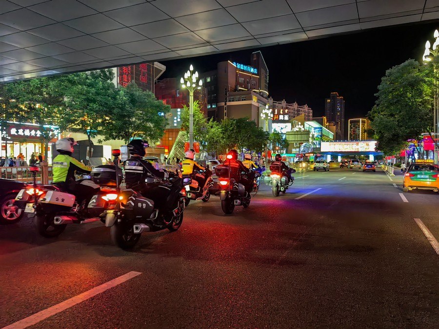 中秋、國慶兩節(jié)期間,呼和浩特市公安局反恐怖和特巡警支隊?wèi)?zhàn)鷹突擊隊與交警支隊停放管理大隊鐵騎中隊,聯(lián)合開展巡邏防控工作,并組成了一支騎警處突機(jī)動隊,成了呼和浩特大街小巷一道亮麗的風(fēng)景線。圖為中秋節(jié)之夜,這支機(jī)動隊開展聯(lián)合巡邏,守護(hù)青城百姓平安過節(jié)。      王鑫  攝影報道