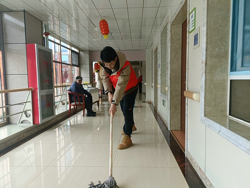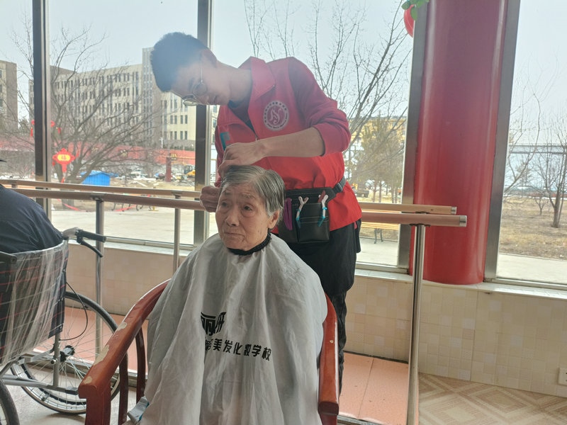 志愿者為敬老院義診、剪發(fā)、心理輔導(dǎo)、打掃房間等活動。