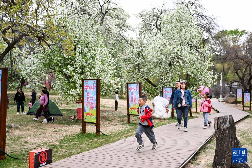 5月4日,小朋友在位于回民區(qū)東烏素圖村的烏素圖杏花谷景區(qū)拍照。
