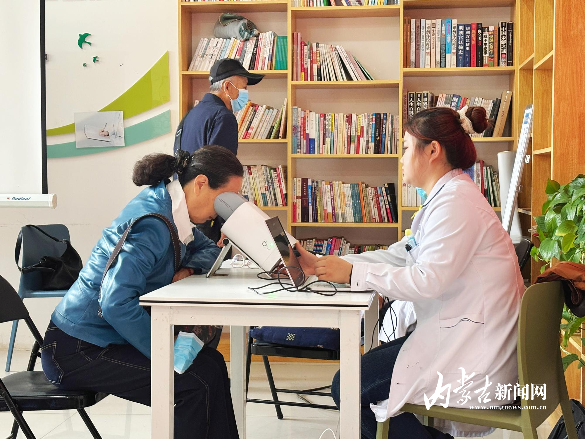 “醫(yī)生,我最近看報(bào)紙總覺得字發(fā)虛,是不是白內(nèi)障又加重了?”“您別著急,先坐好,我?guī)湍屑?xì)查查眼底?!?0月10日上午,呼和浩特市新城區(qū)海拉爾路街道哲里木路社區(qū)戎輝小區(qū)活動室內(nèi)暖意融融,醫(yī)護(hù)人員正耐心地為居民做眼部檢查。當(dāng)日,哲理木路社區(qū)聯(lián)合內(nèi)蒙古朝聚眼科醫(yī)院在這里開展眼科義診活動。