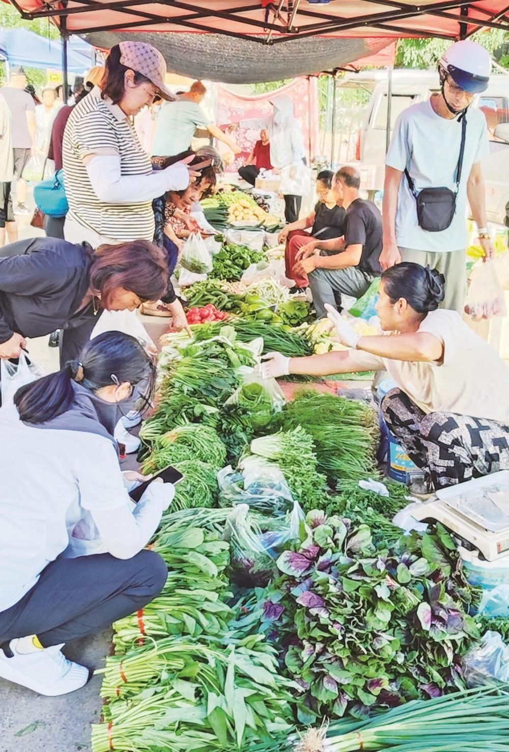 夏日的早市里,菜攤攤主牛麗梅就已經(jīng)擺放好新鮮的蔬菜,泡沫箱里的黃瓜頂著嫩黃的花,筐里的西紅柿還帶著露珠,“這些菜都是半夜起來從地里現(xiàn)摘的,你看看這黃瓜頂花帶刺的,多新鮮。我已經(jīng)在這個早市擺了十來年攤了,人們還是很認(rèn)可我家的蔬菜,就是累點(diǎn)也覺得挺高興的。”她熱情地招呼著前來買菜的市民,過秤、算賬,干脆利落,一看就有著豐富的賣菜經(jīng)驗(yàn)。