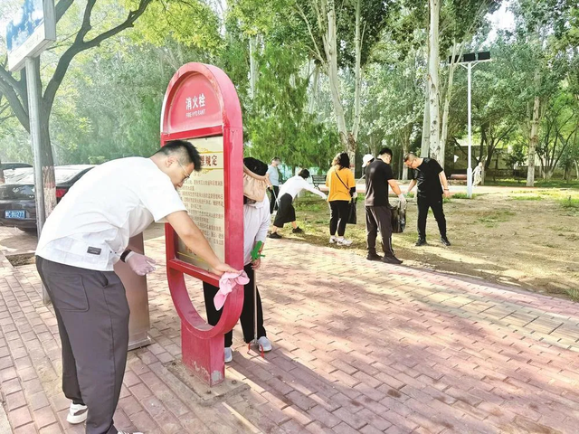 隊員們中有不少是和田永成年紀(jì)相仿的退休老人,還有一些新加入進來的年輕志愿者。他們有的拿著掃帚清掃路面,有的提著袋子撿拾垃圾,有的則在擦拭小區(qū)的健身器材。魏玉仙是志愿服務(wù)隊的老隊員了,她一邊擦著石凳一邊說:“小區(qū)是咱們自己的家,干凈了住著才舒服。老田頭一招呼,我們肯定得來?!?/p>