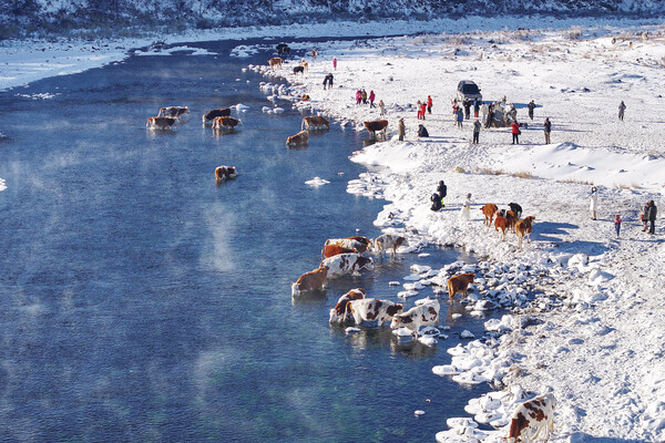 冬日的阿爾山國(guó)家森林公園不凍河,在陽(yáng)光的照耀下輕盈的霧氣裊裊升起,悠閑的牛群在河中咀嚼著鮮美的水草。而那些露出水面的石頭,在寒冷的空氣中被霜花覆蓋如帽,毛茸茸、一團(tuán)一團(tuán)的霜花散落在水中。這如詩(shī)如畫的景象,吸引了眾多游客前來(lái)觀賞。他們紛紛駐足河岸,拿出相機(jī)和手機(jī),競(jìng)相捕捉稍縱即逝的美好瞬間。(記者 畢力格 攝)