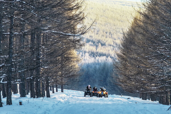 冰天雪地中,又滿是熱氣騰騰的活力景象。森林里的雪地摩托,飛馳而下帶起雪霧,盡顯速度與激情;冰面上,人們歡聲笑語,滑冰、抽冰尜等活動讓這里生機盎然,寒冷被熱情驅散。