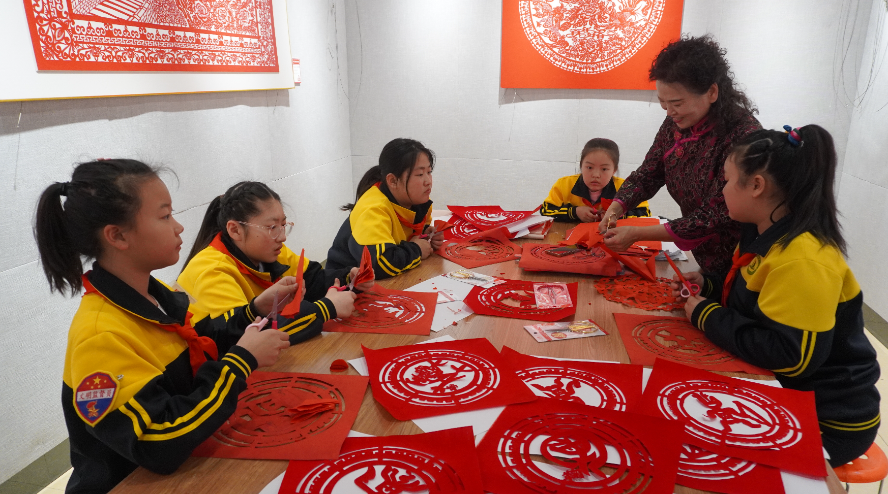 此次展覽的剪紙作品內(nèi)容豐富、制作精致、形式多樣,在傳承傳統(tǒng)剪紙藝術(shù)的同時(shí),注入了新時(shí)代的元素特征,以剪紙藝術(shù)詮釋烏蘭浩特市自然風(fēng)物、傳統(tǒng)建筑與歷史文化之美,展現(xiàn)出剪紙技藝在傳承與發(fā)展中的無(wú)限魅力。觀眾不僅可以近距離感受剪紙的藝術(shù)魅力,還可以參與剪紙,感受中國(guó)傳統(tǒng)文化的博大精深。