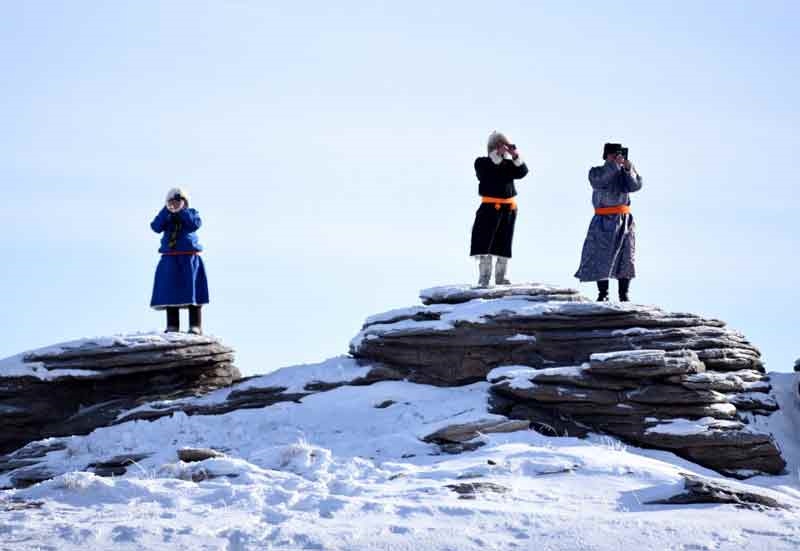 在冰雪覆蓋的草原上,成年駱駝10公里比賽、駱駝選美及128名青壯年搏克賽、射箭比賽等10余項賽事逐一上演,扮靚了寂靜的冬日草原。