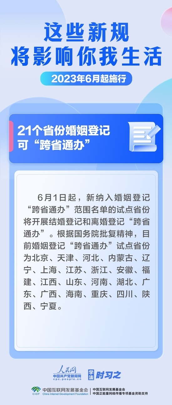 依法從嚴懲處性侵害未成年人犯罪,21個省份婚姻登記可“跨省通辦”,規(guī)范個人信息出境活動……6月,這些新規(guī)施行,將影響你我生活。