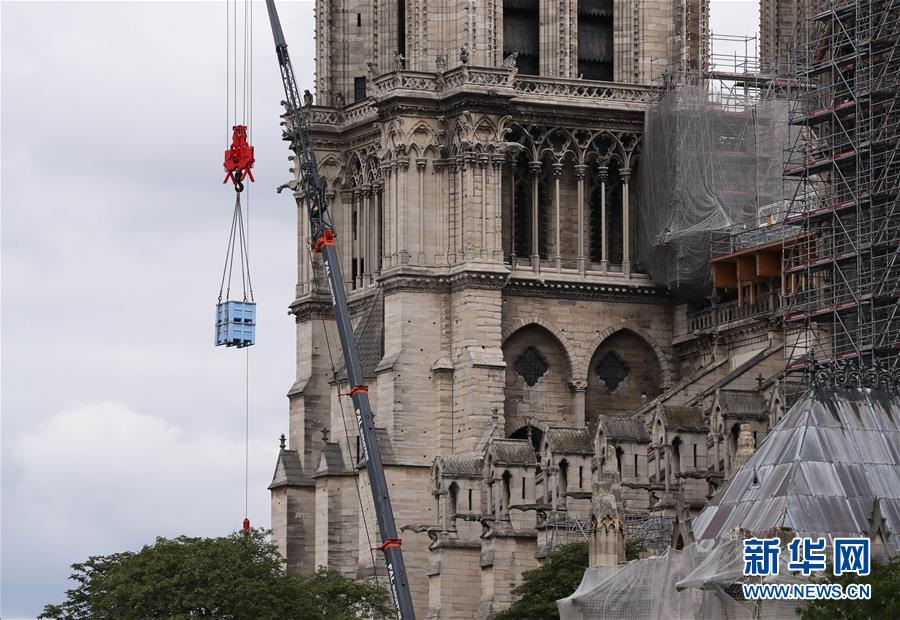 這是6月9日在法國巴黎拍攝的正在進行腳手架拆除工作的巴黎圣母院。法國巴黎圣母院于8日開始拆除去年大火中被焚的腳手架。作為巴黎圣母院修復(fù)工作的重要組成部分,這項工程預(yù)計將持續(xù)至少3個月。2019年4月15日,巴黎圣母院遭遇大火,當(dāng)時圣母院正在進行維修,搭建的腳手架在火災(zāi)中損毀、變形。新華社記者高靜攝