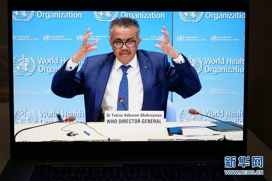 這是6月29日拍攝的世界衛(wèi)生組織總干事譚德塞在瑞士日內瓦出席線上記者會的視頻畫面。新華社記者張鋮攝