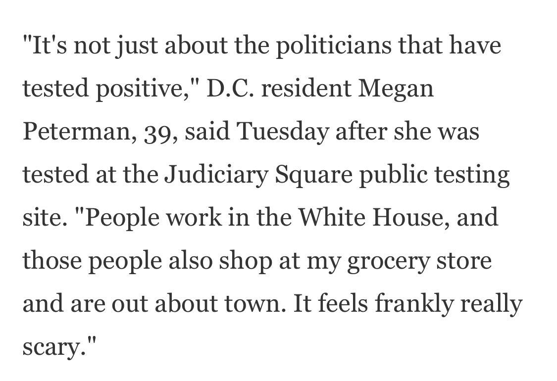 一名不愿意透露姓名的白宮記者也進(jìn)行了核酸檢測(cè),他說(shuō),在總統(tǒng)特朗普等人確診后,白宮工作人員并未向他們這些“潛在感染者”提供疫情相關(guān)的信息或建議,“他們對(duì)所發(fā)生的事情不負(fù)責(zé)任,毫無(wú)作為,我們只知道自己有可能被傳染?!?/p>