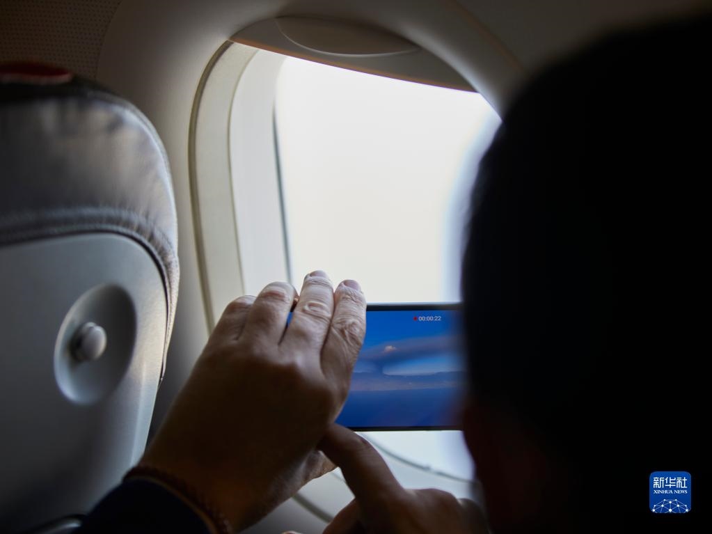 9月23日,一名乘客在飛往西班牙拉帕爾馬島的航班上拍攝火山噴發(fā)。