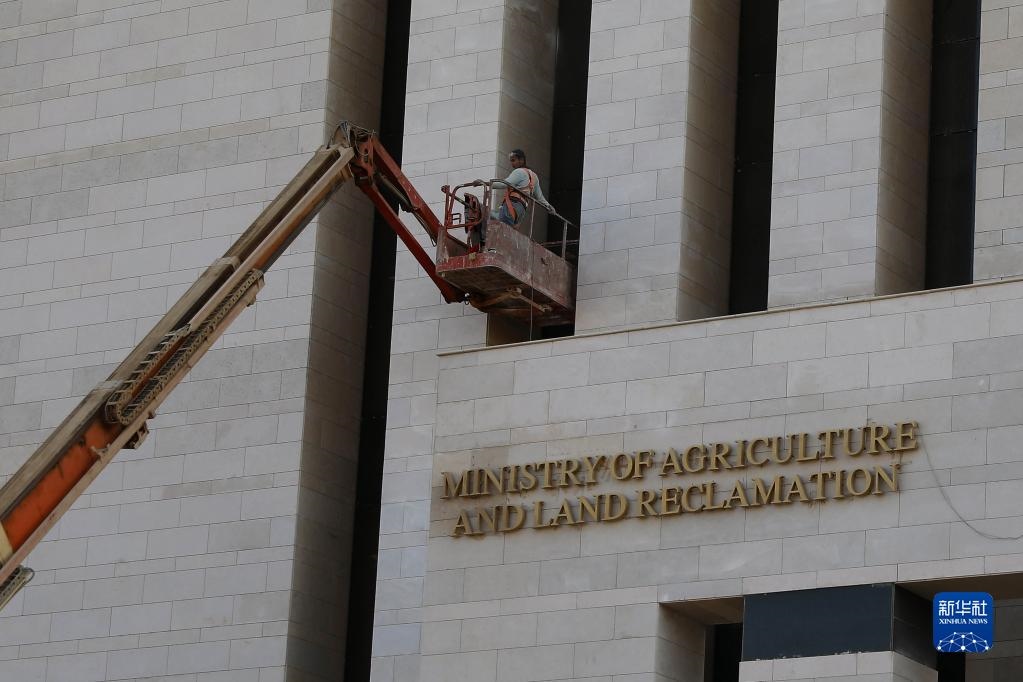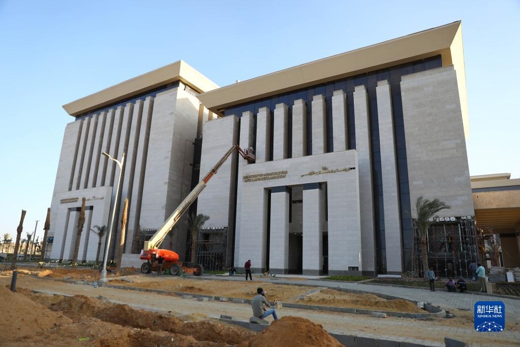 11月3日,工人在埃及新行政首都的農業(yè)與土地改造部新大樓外施工。新華社發(fā)(艾哈邁德·戈馬攝)
