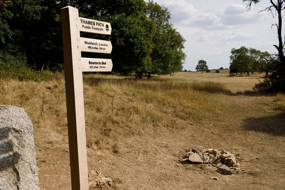↑這是8月14日在英國賽倫塞斯特附近拍攝的干涸的泰晤士河發(fā)源地和一塊寫有“泰晤士河起點(diǎn)”的石碑。