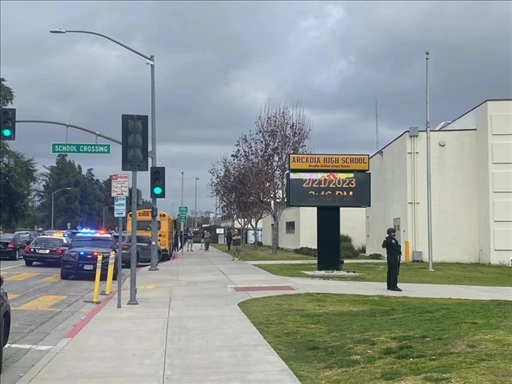 新華社洛杉磯2月24日電(記者高山)當(dāng)?shù)貢r間2月21日下午3點多,美國加利福尼亞州洛杉磯縣阿卡迪亞高中即將放學(xué),突然間大批警車呼嘯而至,封鎖了各個入口,荷槍實彈的警察在直升機掩護下沖入校園。教室內(nèi),師生們緊張地躲到桌下。校園外,家長們焦急地等待消息。