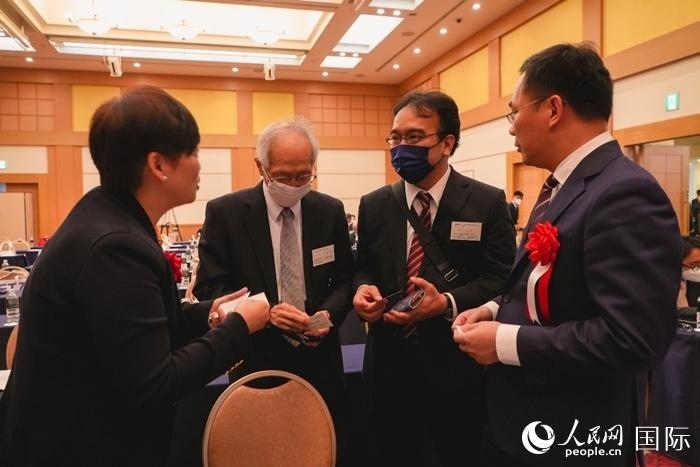 廣西經(jīng)貿(mào)代表團與日本國際貿(mào)易促進協(xié)會進行現(xiàn)場交流。人民網(wǎng) 滕雪攝