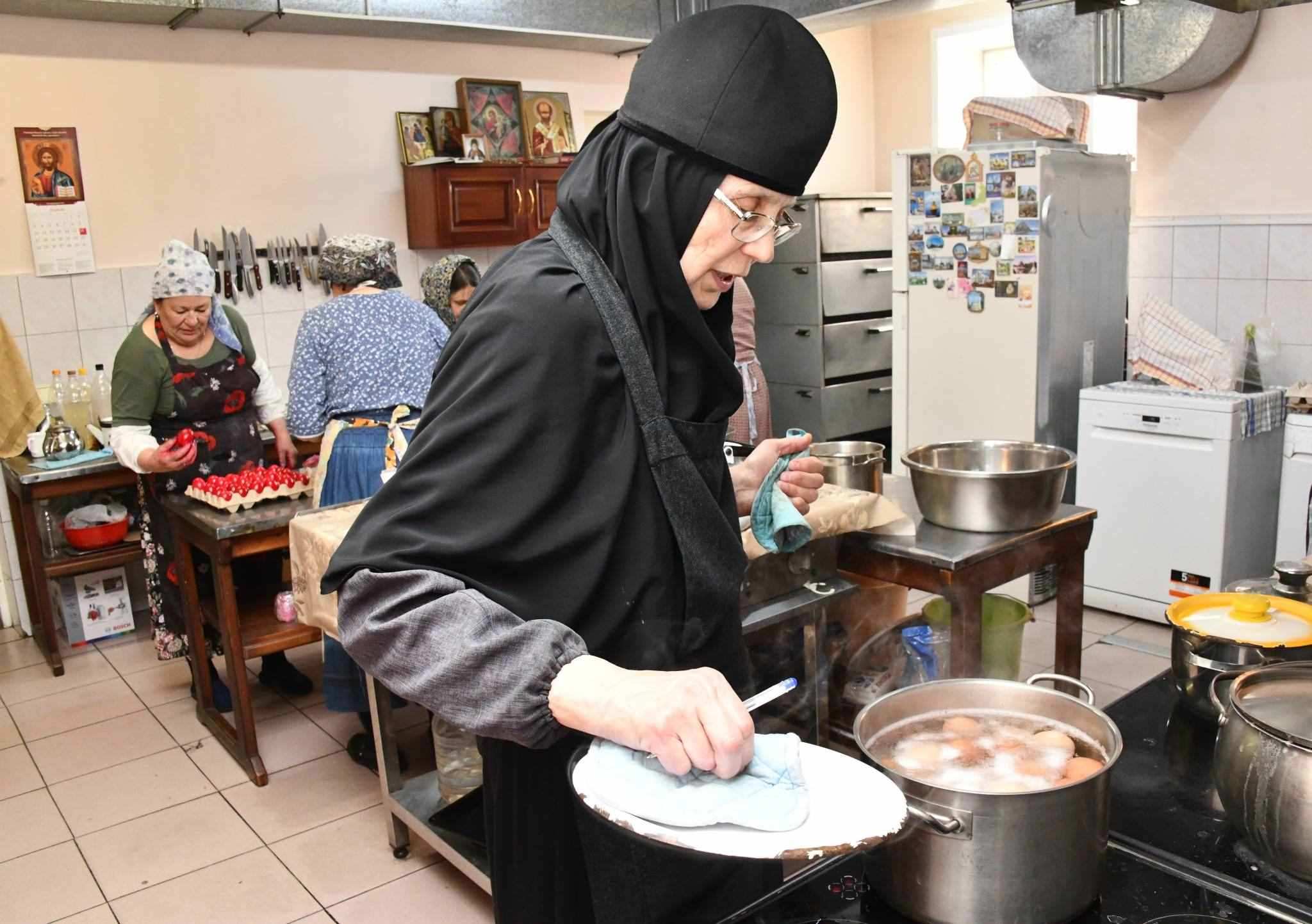 當(dāng)?shù)貢r(shí)間2023年4月13日,俄羅斯扎貝卡爾斯基地區(qū),阿塔馬諾夫卡定居點(diǎn)的一修道院內(nèi),民眾在制作東正教復(fù)活節(jié)前的傳統(tǒng)煮雞蛋。視覺(jué)中國(guó)