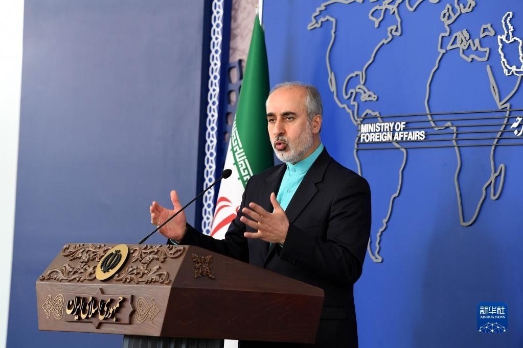 4月17日,在伊朗首都德黑蘭,伊朗外交部發(fā)言人卡納尼在例行記者會上。新華社記者 沙達提 攝