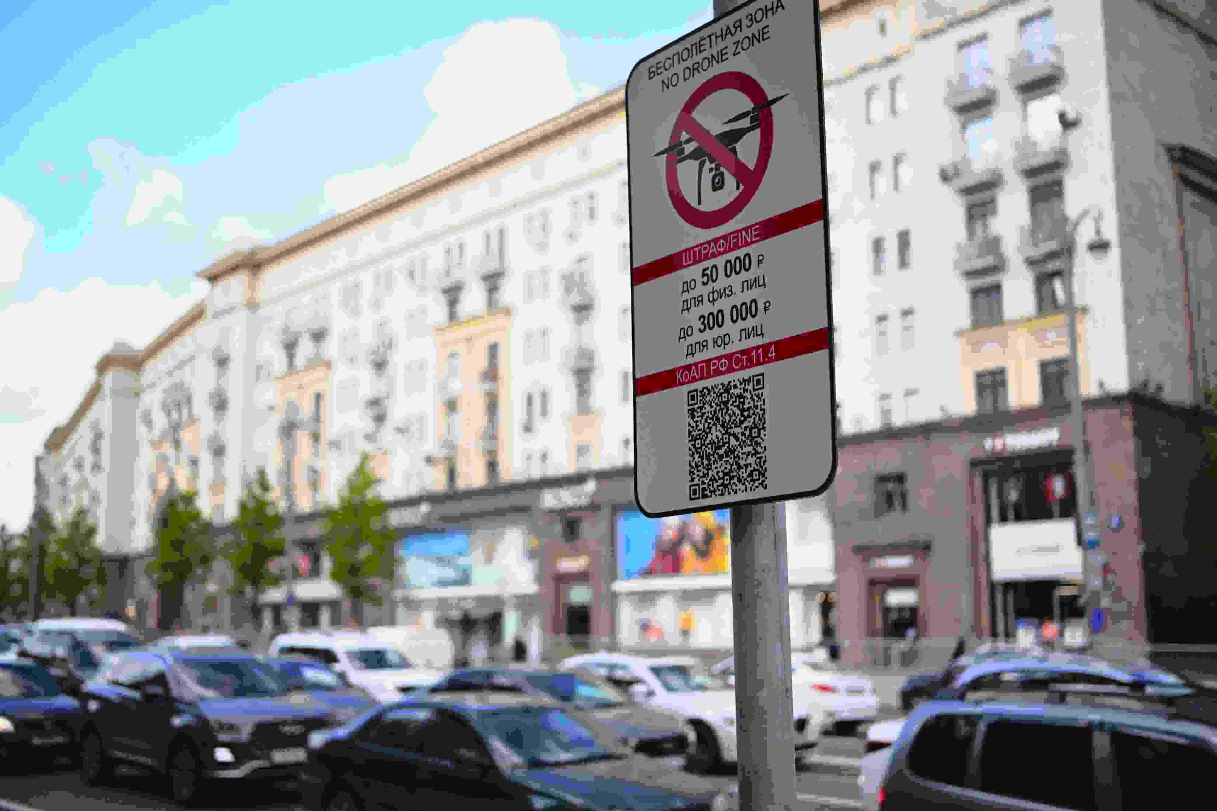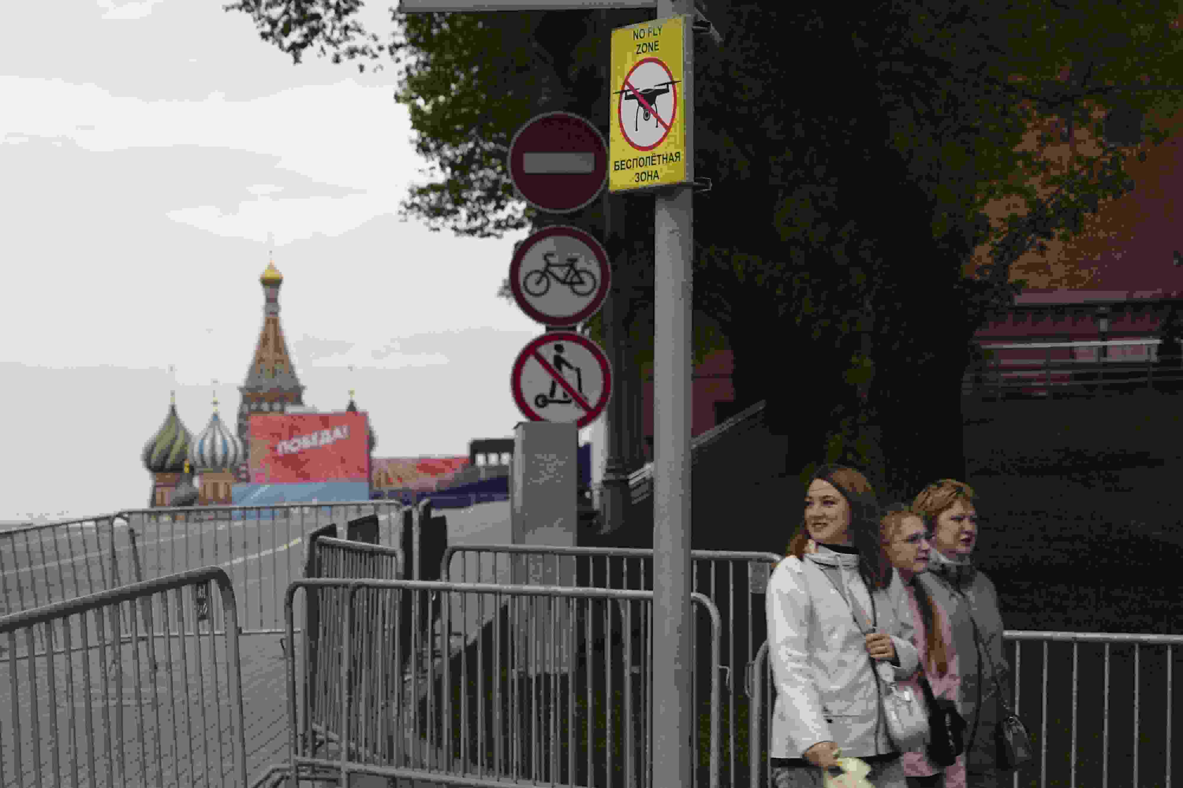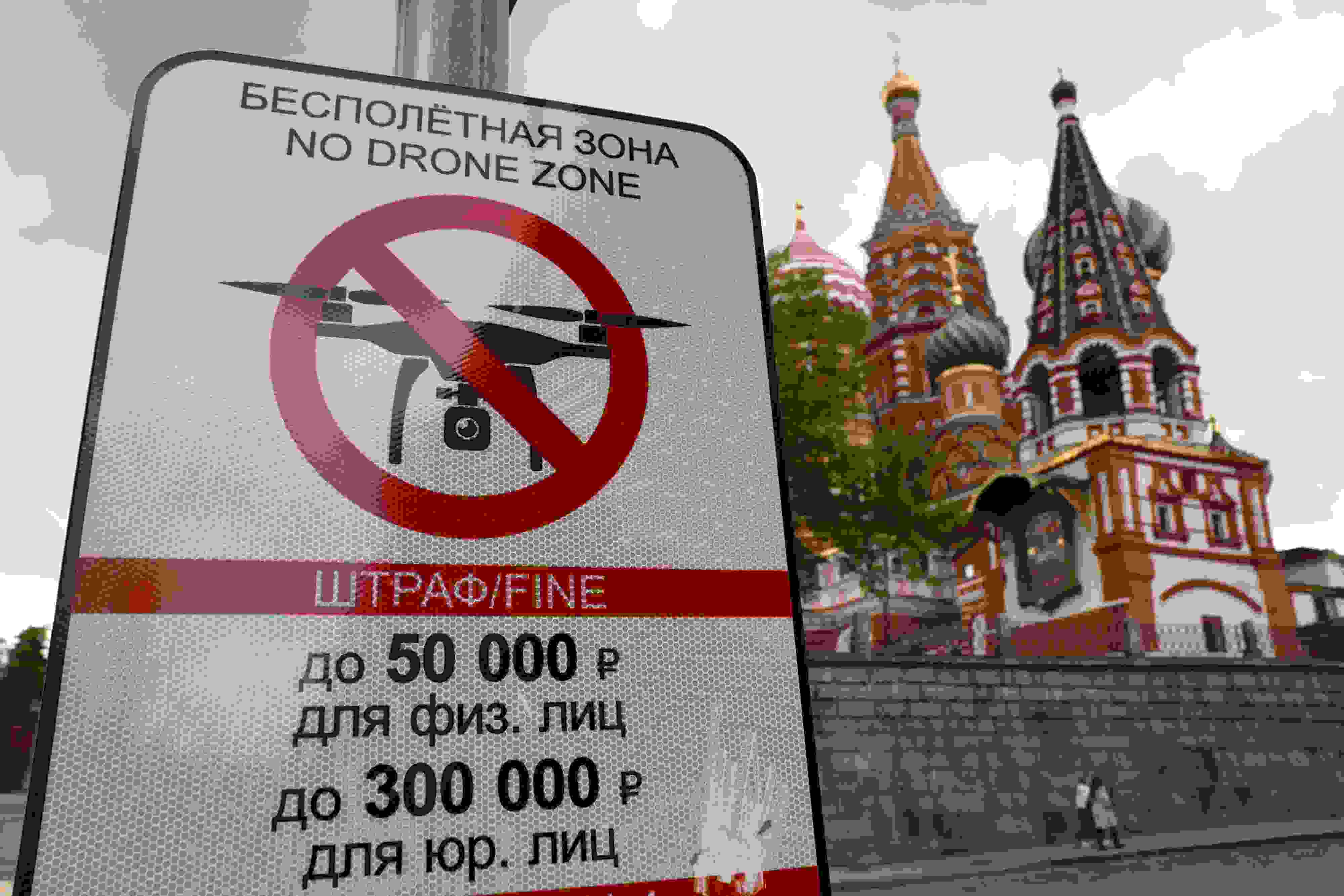 當?shù)貢r間2023年5月3日,俄羅斯莫斯科,莫斯科市中心懸掛的“無人駕駛飛機禁飛區(qū)”的標志,禁止無人機在該地區(qū)飛行??死锬妨謱m遭無人機襲擊后,莫斯科市長宣布禁止未經(jīng)授權的無人機在俄羅斯首都上空飛行。 視覺中國
