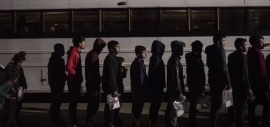 美國工廠童工們排成長隊(duì)。(美國微軟全國有線廣播電視公司視頻截圖)