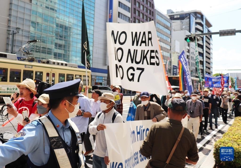 “不做戰(zhàn)爭幫兇”“不要G7”……14日,200多名日本民眾舉著各式標(biāo)語,在廣島和平紀(jì)念公園原子彈轟炸遺址舉行集會(huì),強(qiáng)烈抗議七國集團(tuán)(G7)峰會(huì)將在廣島召開。