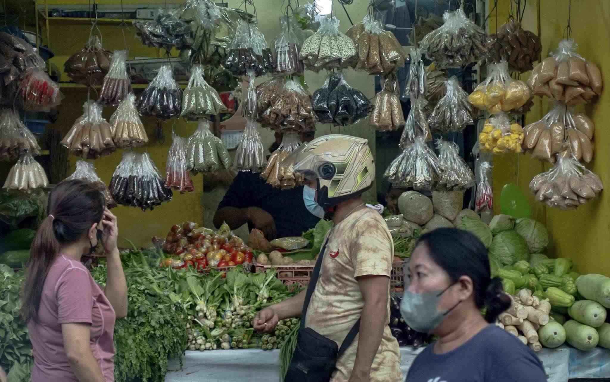 當?shù)貢r間2023年4月19日,菲律賓馬尼拉,在奎松市的菜市場,塑料包裝的不同商品在出售。
