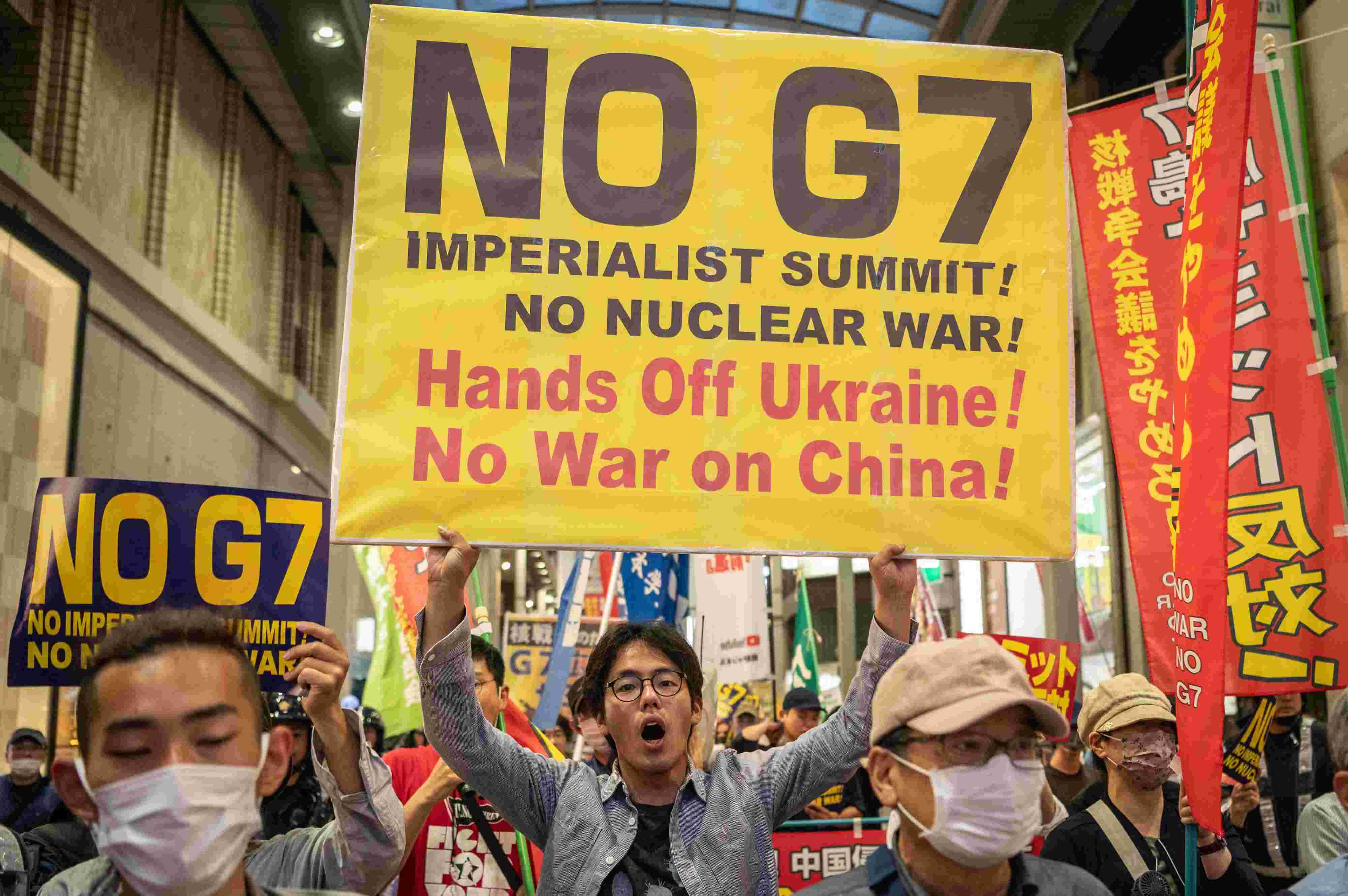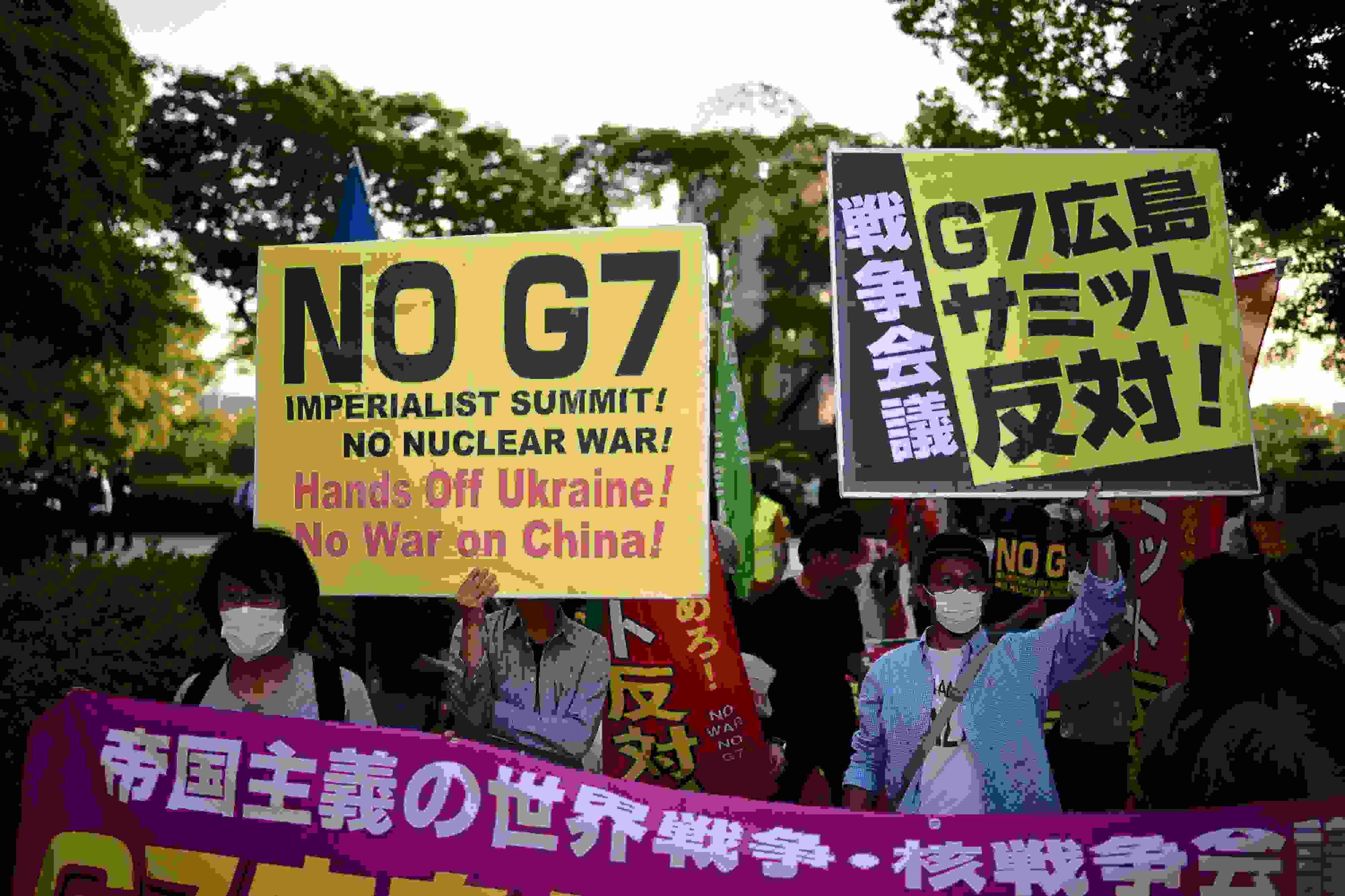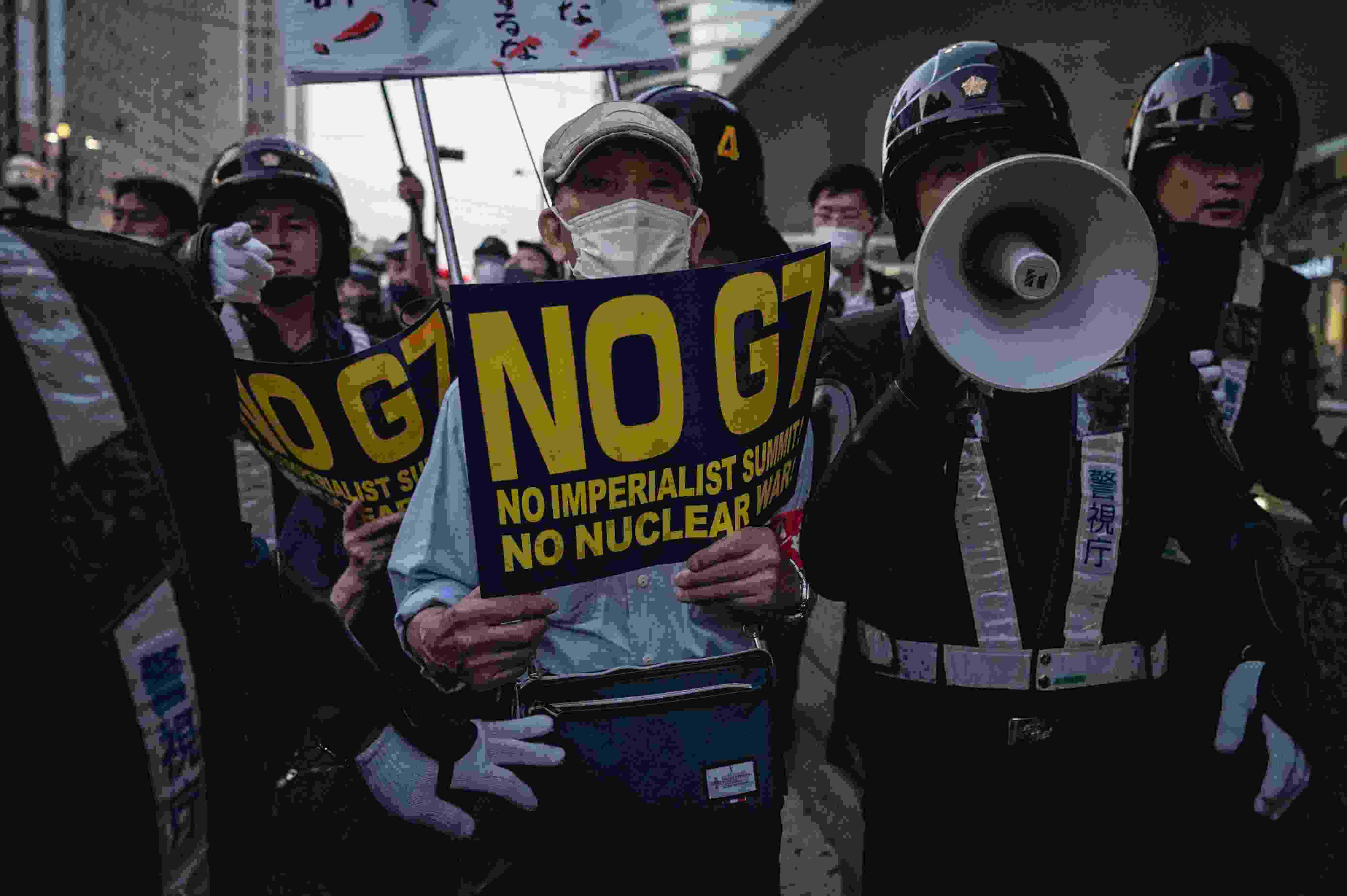 日本民眾抗議七國集團(tuán)峰會(huì)在廣島召開