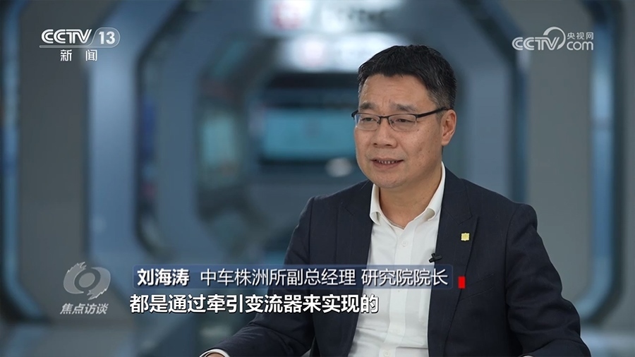 中車株洲所副總經(jīng)理、研究院院長劉海濤:“在高鐵車窗上擺一枚硬幣,這枚硬幣在高鐵300公里時速運行工況下依然非常平穩(wěn)。過程中的加減速以及恒速控制,都是通過牽引變流器實現(xiàn)的。”