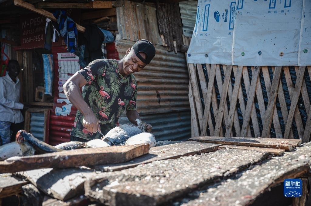 6月11日,在坦桑尼亞姆萬扎省維多利亞湖畔,漁民處理漁獲。