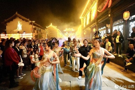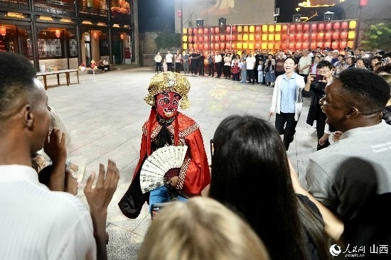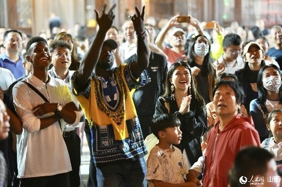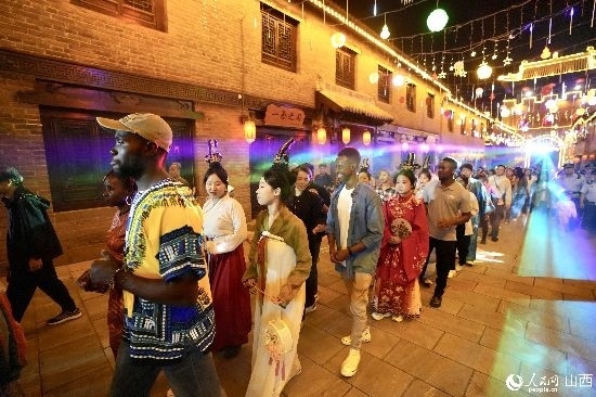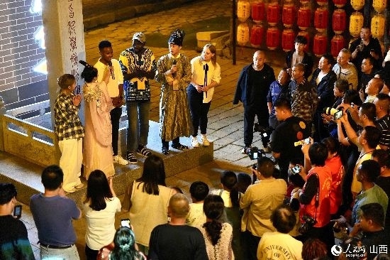眼花繚亂的民俗表演,沉浸式的古城巡游,絢爛的城樓燈光秀,陶醉的狂歡……9月15日夜晚,在即將結(jié)束山西之行的前夜,2023“漢字緣”國(guó)際故事大會(huì)決賽的選手們夜游山西省晉城市陽城縣郭峪古城,于燈火闌珊處感受古城中的人間煙火。(人民網(wǎng) 盧鵬宇攝)