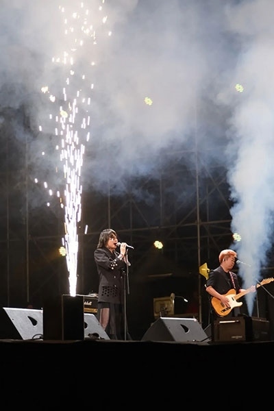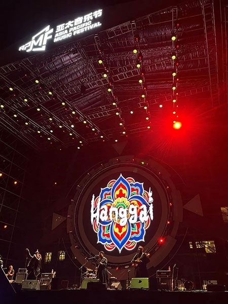 中國金屬硬搖滾樂的先驅(qū)——面孔樂隊(duì)演唱了《英雄》《幻覺》等經(jīng)典歌曲,讓人夢(mèng)回青蔥歲月。當(dāng)熟悉的《愛不愛我》響起時(shí),全場觀眾都在齊聲合唱,周曉鷗也帶來了多首自己的新歌。羅琦的《我是一只小小鳥》瞬間激起了所有樂迷的熱情。王北車與觀眾開展了近距離互動(dòng),觀眾伴隨著音樂搖擺吶喊,掀起一波又一波熱潮。來自草原的杭蓋樂隊(duì)一上臺(tái)就引起了觀眾的熱烈反響,蒙古民間音樂與搖滾樂在草原激情碰撞。舞臺(tái)上,音符律動(dòng)、唱跳狂嗨;舞臺(tái)下,尖叫不斷,釋放激情。