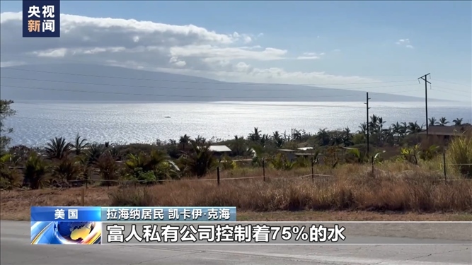 央視記者 劉旭:整個(gè)毛伊島都是異常干燥炎熱的天氣,所以在我旁邊也是連片枯草的景象。整個(gè)毛伊島西部地區(qū),包括拉海納地區(qū),淡水資源非常緊缺。當(dāng)?shù)匾恍┚用竦纳钣盟窃趺磥?lái)的呢?是在遠(yuǎn)處山上地勢(shì)較高的地區(qū),有一些儲(chǔ)水設(shè)施或者蓄水池,把一些天然的降水和高山融水儲(chǔ)存起來(lái),另外再通過(guò)地表徑流流經(jīng)到生活的不同區(qū)域,很多當(dāng)?shù)孛癖姇?huì)安裝這樣的水閥、水表把水引到自己的家中。在8月8日拉海納大火發(fā)生之后,當(dāng)?shù)氐乃Y源使用權(quán)利也出現(xiàn)很多爭(zhēng)議。