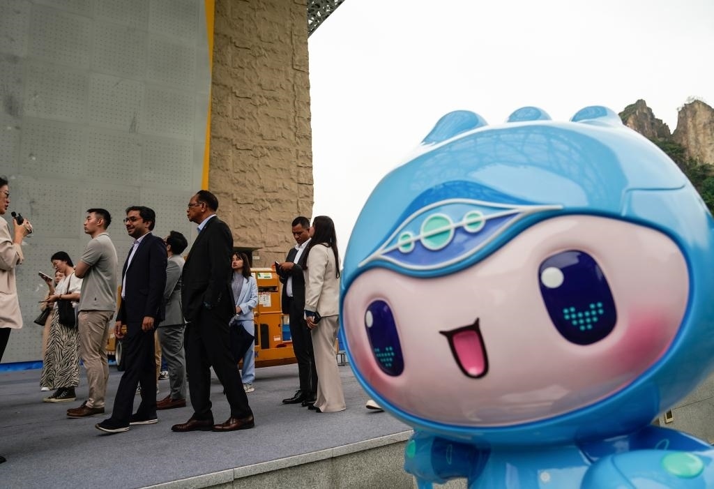 在自動檢測產品外觀缺陷的視覺質檢機器人前,使節(jié)們停下腳步,饒有興致地觀看?;瘕堈f:“在數(shù)字經濟推動下,人工智能等技術與傳統(tǒng)工業(yè)深度結合,讓人耳目一新?!?/p>